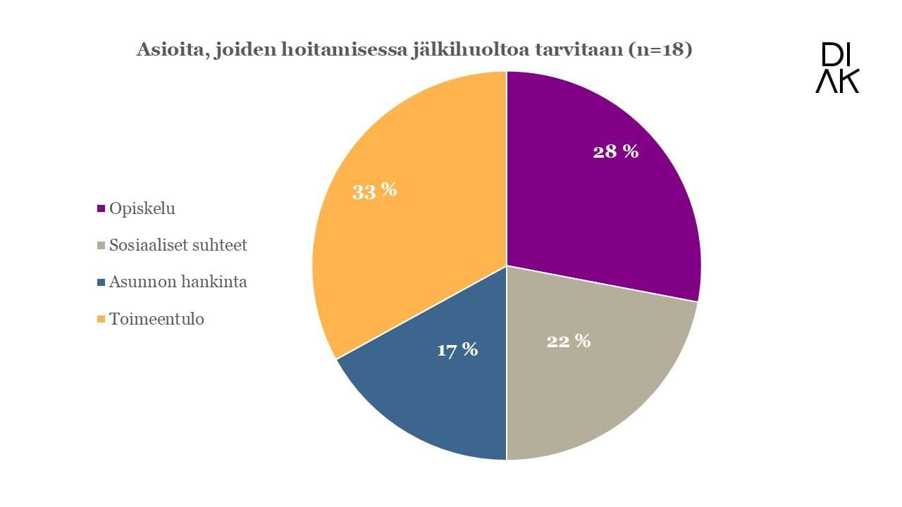 Kuvio 4. Ohjaajien näkemyksiä asioista, joiden hoitamisessa jälkihuoltoa tarvitaan.