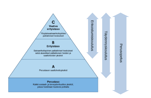 Kuva 1. STM:n palliatiivisen hoidon tasot ja niitä vastaava koulutus (EduPal)